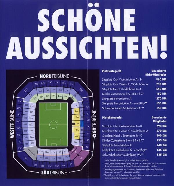 Der HSV hat folgende Dauerkartenpreise bekanntgegeben. Die Preise sind identisch mit denen der Saison 2000/2001